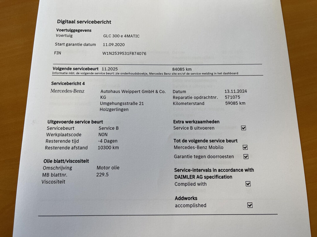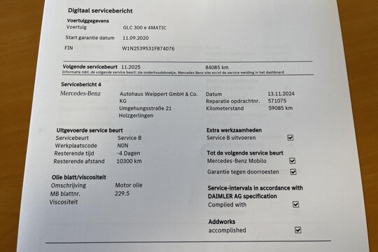 De Mercedes-Benz GLC-klasse is gebouwd met hoogwaardige techniek en maakt het rijden van lange ritten, maar ook korte stukjes, tot een feestje. Met de AMG-styling trekt u op een positieve manier de aandacht. Een elektromotor of verbrandingsmotor? Kiezen hoeft niet, want deze auto is hybride. Slim, zuinig en voordelig! U past de stoelen moeiteloos aan, ze zijn elektrisch in te stellen en hebben bovendien een geheugen. De achterklep opent automatisch met een druk op de knop. Handig als u met volle handen staat. De kwaliteit van de matrix LED-verlichting geeft het gevoel dat u bij daglicht rijdt. Ook is de auto voorzien van: 19 inch lichtmetalen velgen, AMG-styling, extra getint glas, in delen neerklapbare achterbank, treeplanken en LED-achterlichten.