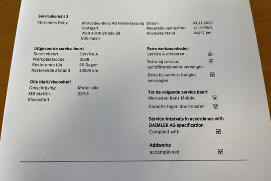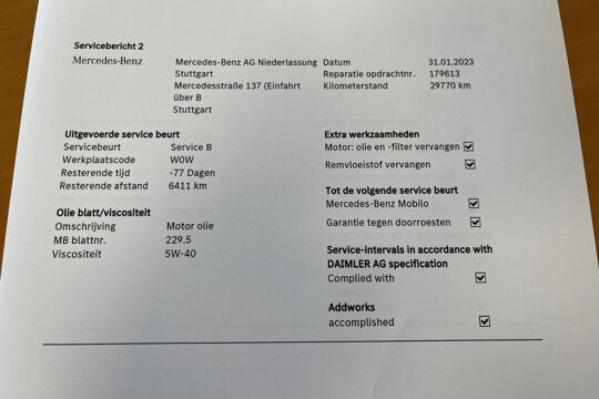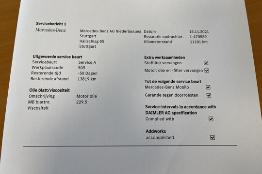 - Servicebeurt voor aflevering volgens fabrieksschema