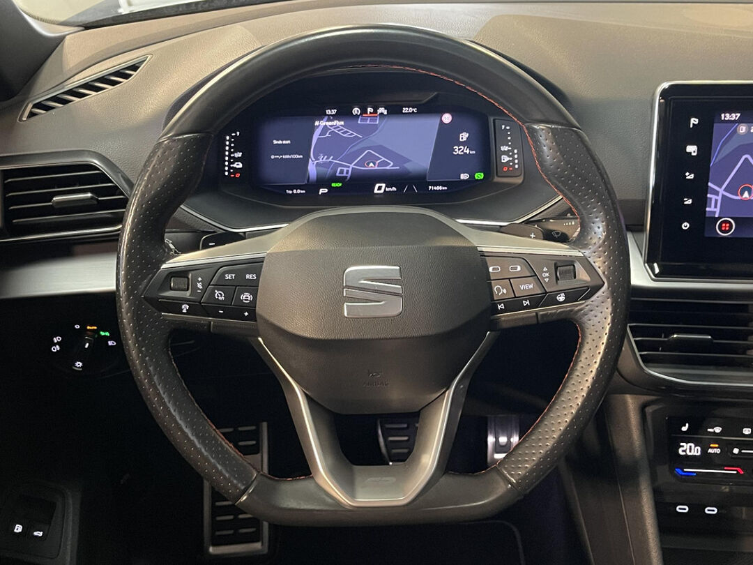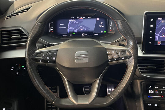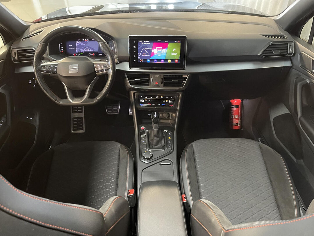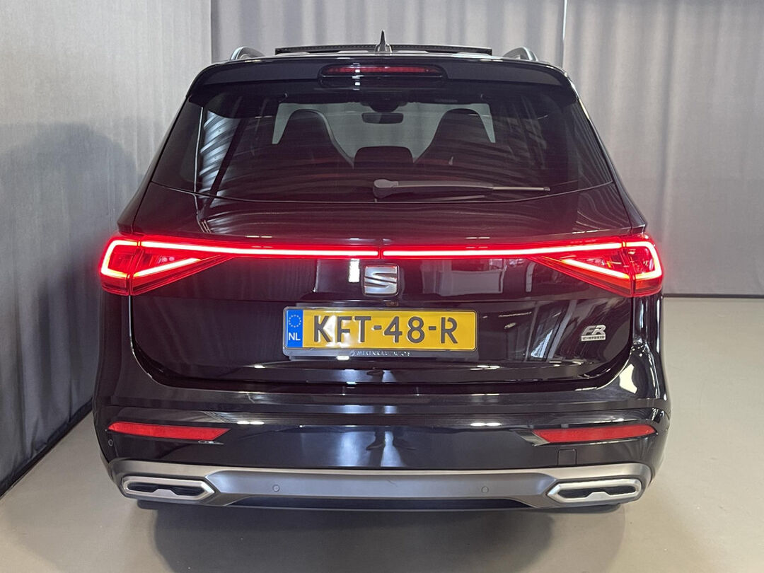 Zijn dynamische uiterlijk maakt al direct duidelijk wat voor rijervaring u van deze SEAT Tarraco mag verwachten: pure sportiviteit. Deze SEAT Tarraco heeft in feite twee motoren: een voor benzine en een elektronische. Deze hybride oplossing biedt het beste van beide! Dankzij het elektrisch bediende glazen panorama dak lijkt het of u altijd met open dak rijdt, zoveel lichtinval heeft u. Met één druk op de knop te openen, net als trouwens de elektrisch bedienbare achterklep. De meegeleverde stoelverwarming zorgt in no time voor een behaaglijk gevoel als het buiten koud is. Zo'n verwarmd stuurwiel is een comfortabele extra, zeker in de winter. U wordt in deze auto ook getrakteerd op 19 inch lichtmetalen velgen, Full LED koplampen, adaptief dempingsysteem, extra getint glas, in delen neerklapbare achterbank en LED-achterlichten.