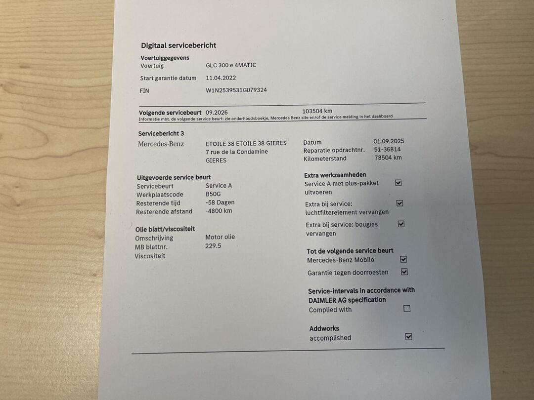 Met deze prachtige Duitse auto geniet u van grensverleggende technologie, uiterst comfortabele rijeigenschappen en een indrukwekkende bouwkwaliteit. De verschillende elementen van de AMG-styling accentueren de dynamische lijnvoering van deze GLC-klasse. Het beste van twee werelden komt samen in de hybride motor. Daarmee wordt deze Mercedes-Benz GLC-klasse aangedreven door zowel brandstof als door de elektrische accu, die al rijdend of remmend wordt bijgeladen. Even op het knopje drukken en de elektrisch bedienbare achterklep gaat open. Net zo gemakkelijk als het elektrisch bediende glazen panorama dak. 's Winters komen de verwarmbare voorstoelen heerlijk van pas. De sportstoelen houden u en uw passagier stevig vast tijdens een snelle rit, maar bieden ook altijd comfortabele ondersteuning. Ook is de auto voorzien van: 19 inch lichtmetalen velgen, LED koplampen, AMG-styling, sportonderstel, warmtewerend glas en in delen neerklapbare achterbank.