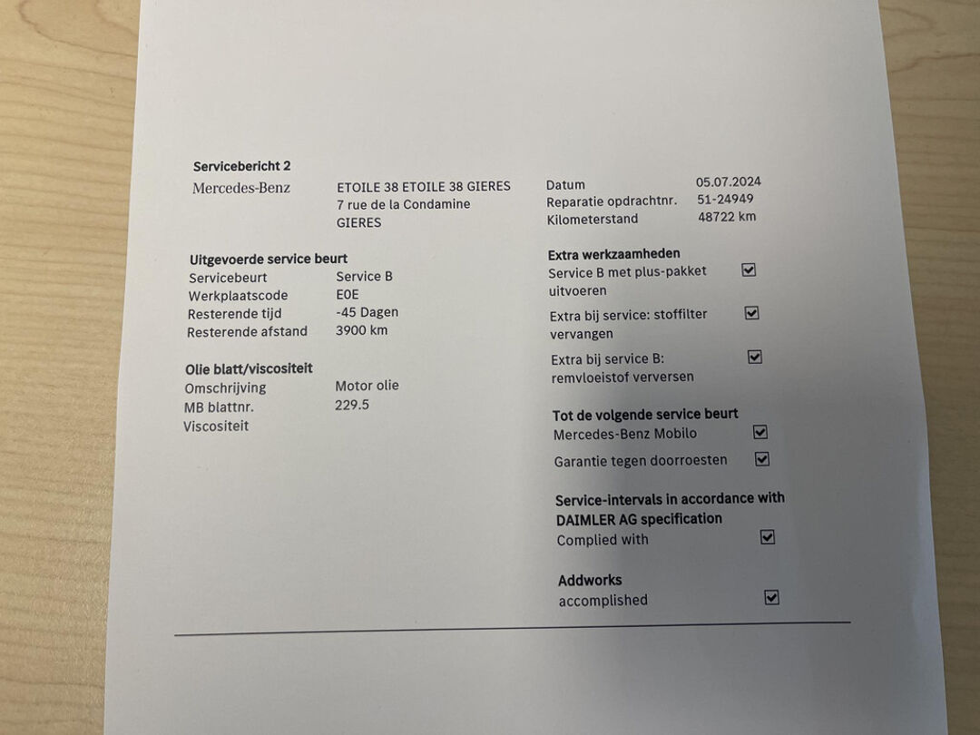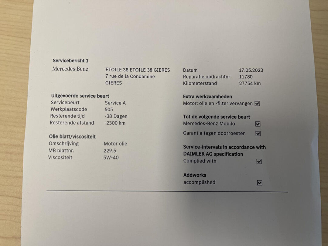 Het personaliseren van uw cockpitinterface is mogelijk met het digitale dashboard in deze auto. Het gebruik van de 360 graden camera op deze auto helpt u bij het navigeren door lastige rijbanen en het drukke stadsverkeer. Een veiligheidsverhogende optie is de ingebouwde spraakbediening. Terwijl u uw ogen op de weg houdt, bedient u de auto met uw stem. Waar u zelf ook bent, u staat altijd in contact met de auto via de app op uw smartphone. Zo controleert u uiteenlopende functies, ook op afstand. De snelste of zuinigste weg? Het full map navigatiesysteem aan boord wijst de juiste weg! U bent in deze Mercedes-Benz ook voorzien van achteropkomend verkeer waarschuwing, automatische airconditioning, sportstuur met schakelpaddels, DAB ontvangst, regensensor en cruise control.