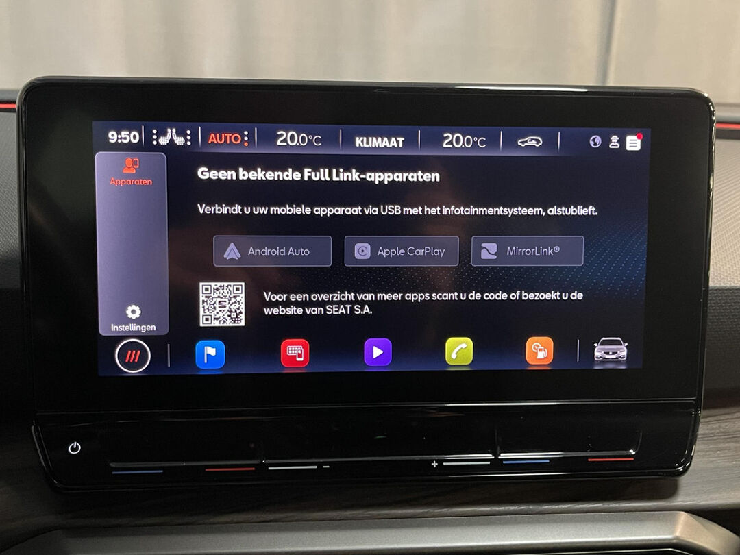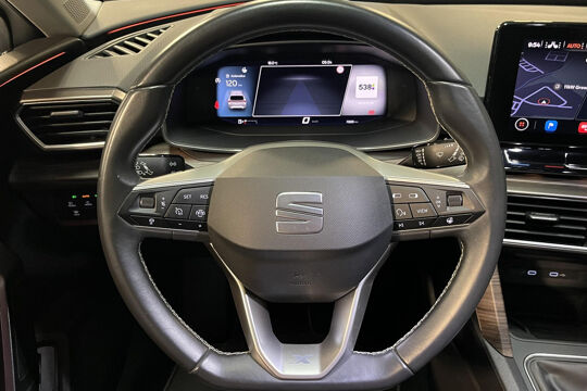 Alle benodigde informatie helder in beeld: het digitale dashboard is een geweldige rijhulp. Soepel inparkeren gaat gemakkelijker dan u verwacht dankzij de achteruitrijcamera. Adaptive cruise control houdt de ingestelde snelheid vast en houdt automatisch afstand tot uw voorligger. De auto's van vandaag rijden niet alleen subliem, maar luisteren ook goed. Via een speciale app kunt u overal diverse functies controleren en de status van de auto inzien. Het audiosysteem met DAB-ontvangst en het full map navigatiesysteem bedient u veilig met knoppen op het stuurwiel of met gesproken commando's. De uitrusting van deze SEAT is met automatische airconditioning, draadloos opladen, regensensor, keyless entry, automatisch dimmende binnenspiegel en centrale deurvergrendeling met afstandsbediening behoorlijk compleet.