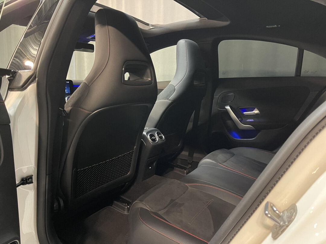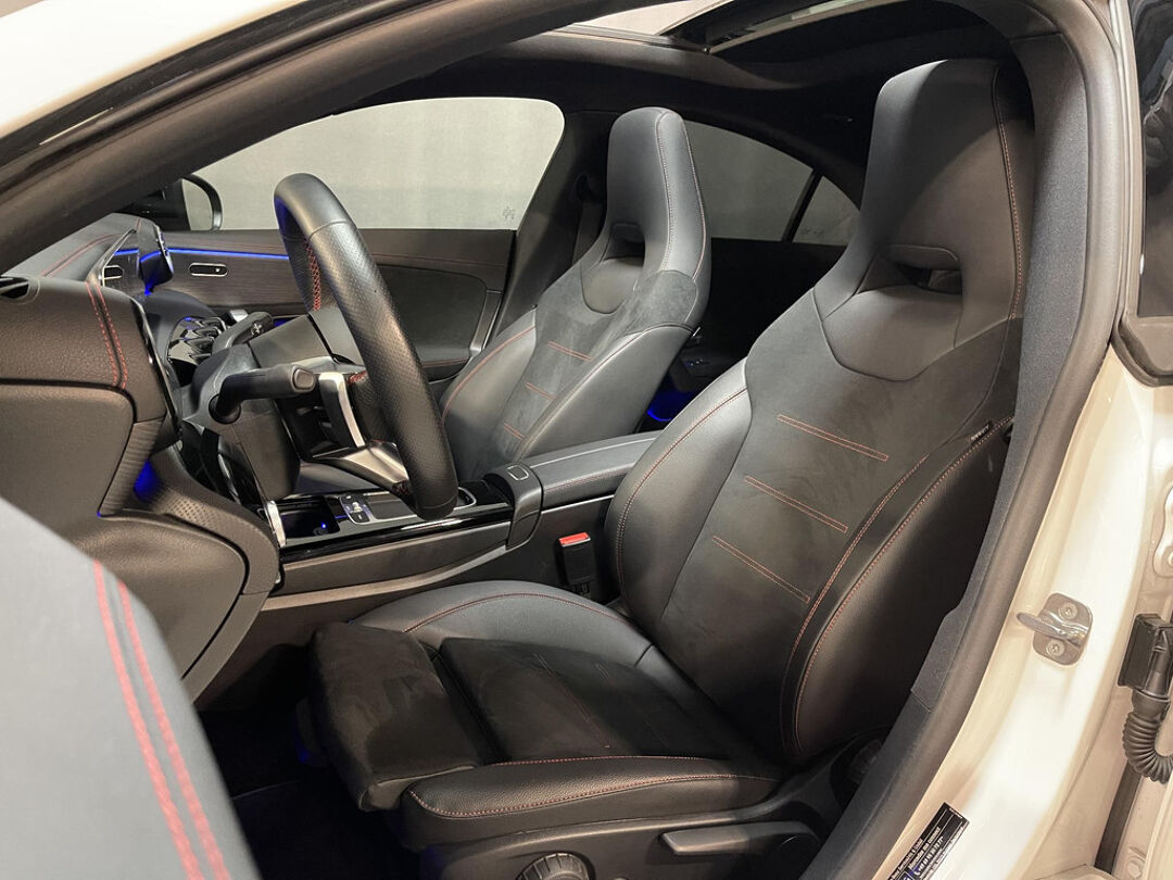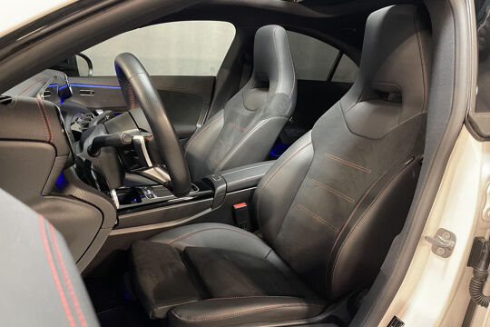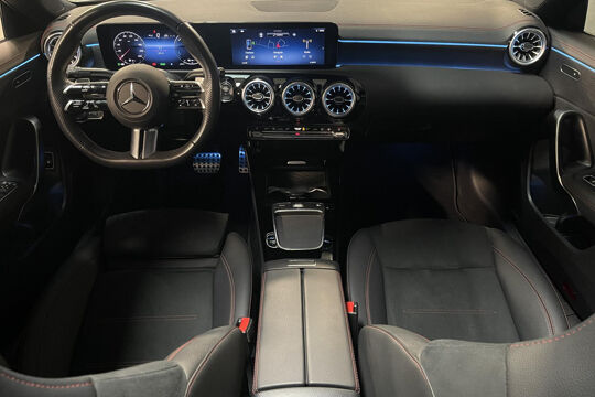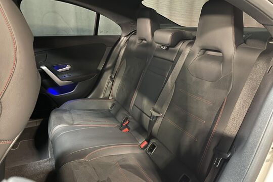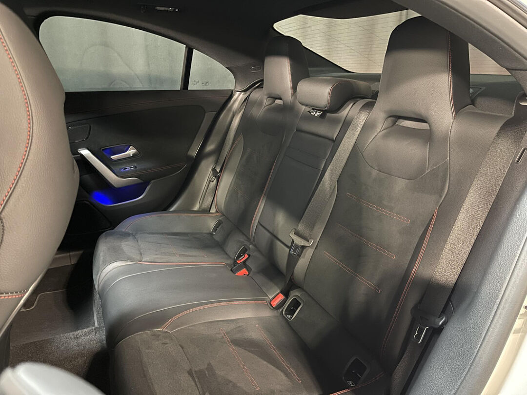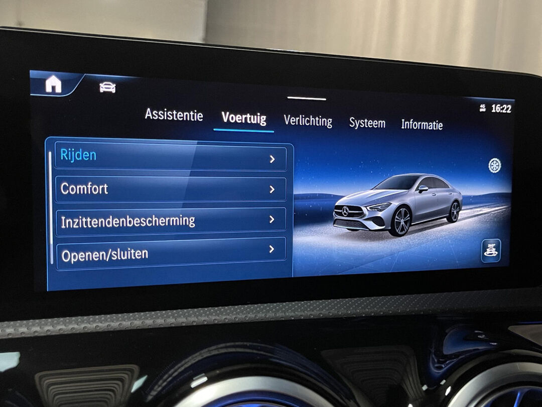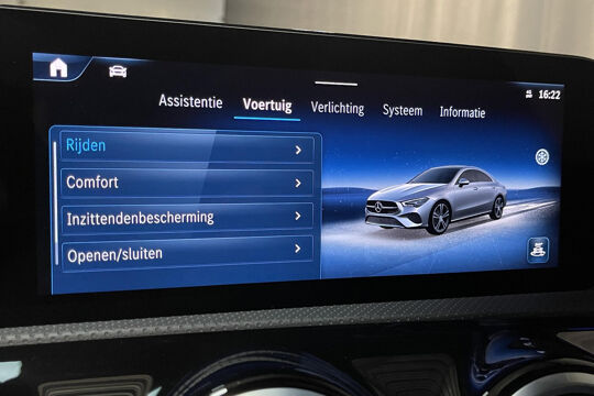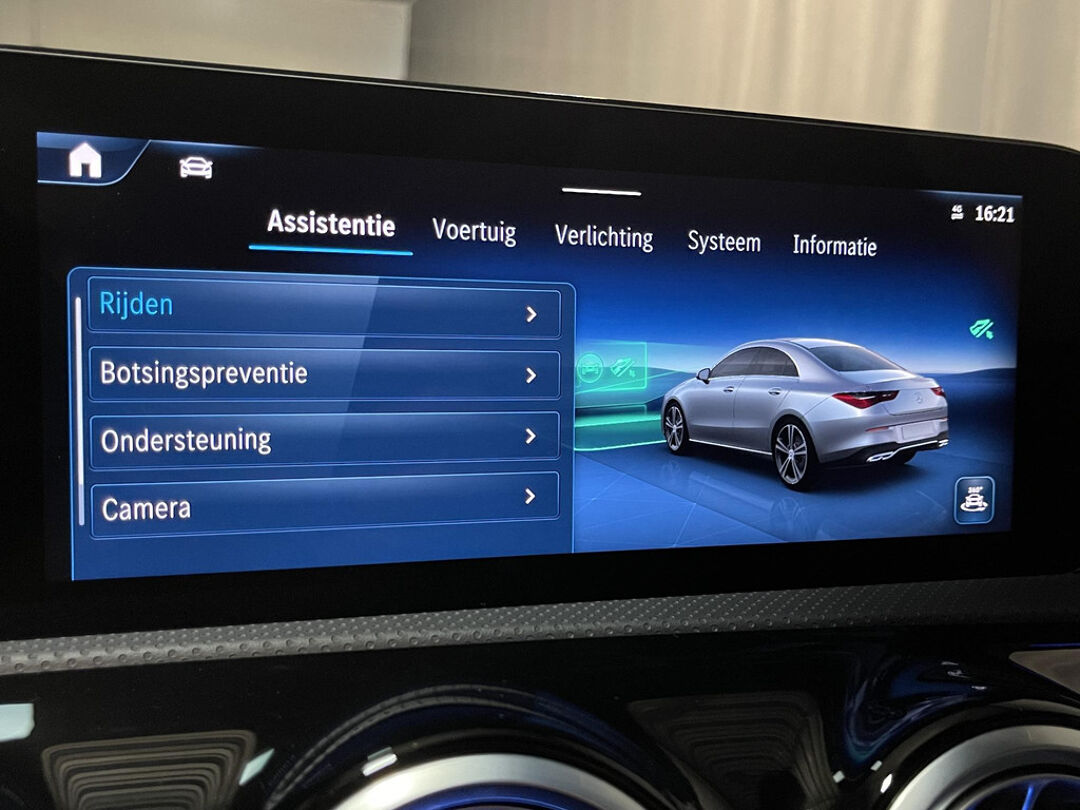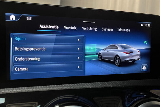 De nieuwste veiligheidssystemen komen in deze Mercedes-Benz CLA-klasse samen. Dat de auto steeds meer taken van de bestuurder overneemt, merkt u bijvoorbeeld aan het systeem voor verkeersbord-detectie in deze Mercedes-Benz. Het Lane-keeping systeem registreert permanent of u binnen de lijnen van de rijstrook blijft; dwaalt u onbedoeld af, dan waarschuwt het systeem en corrigeert de koers. Als een ander voertuig in uw dode hoek rijdt, waarschuwt het systeem met een signaal. Dankzij veiligheidsvoorzieningen als forward collision warning system, vermoeidheidsherkenning, autonoom remsysteem en bandenspanningcontrolesysteem, bent u steeds veilig onderweg.
