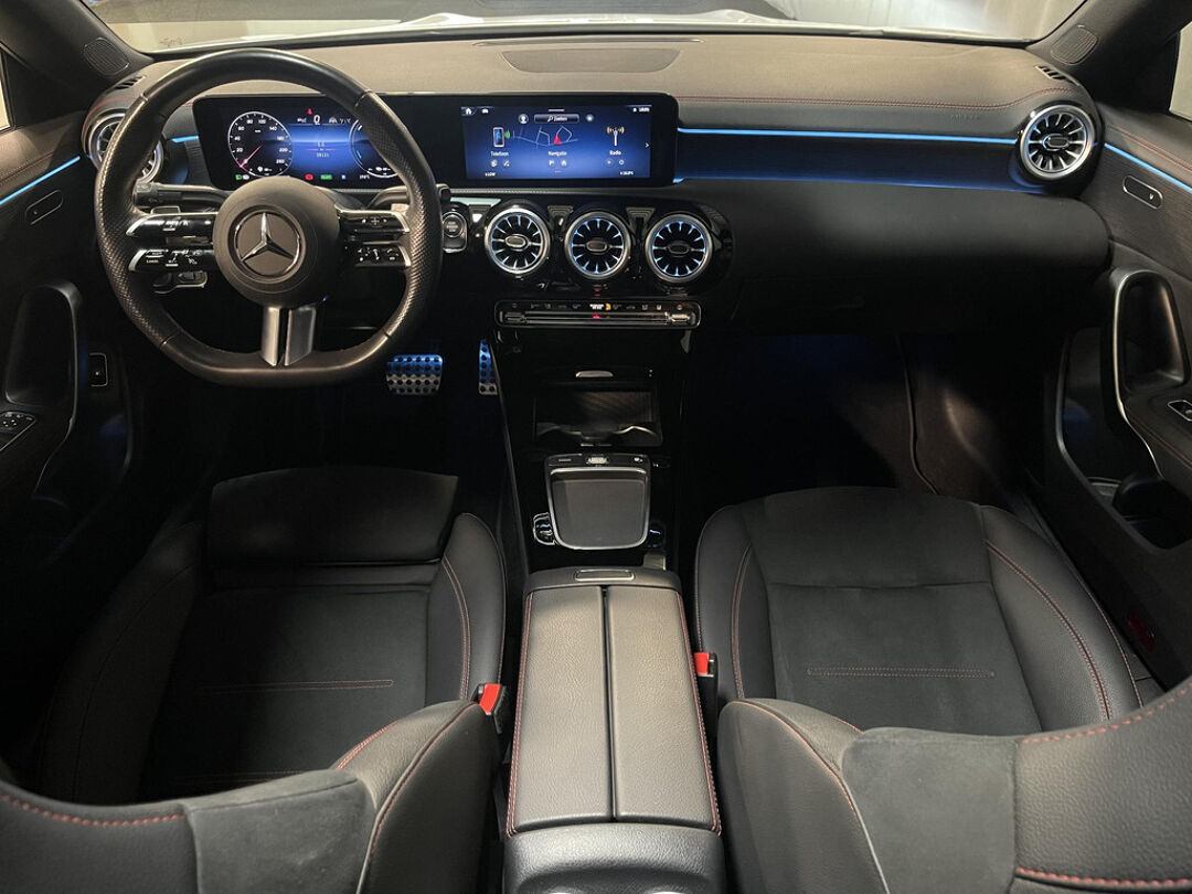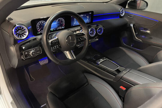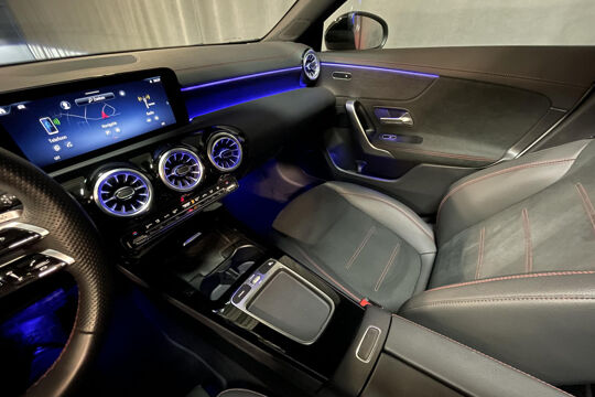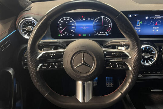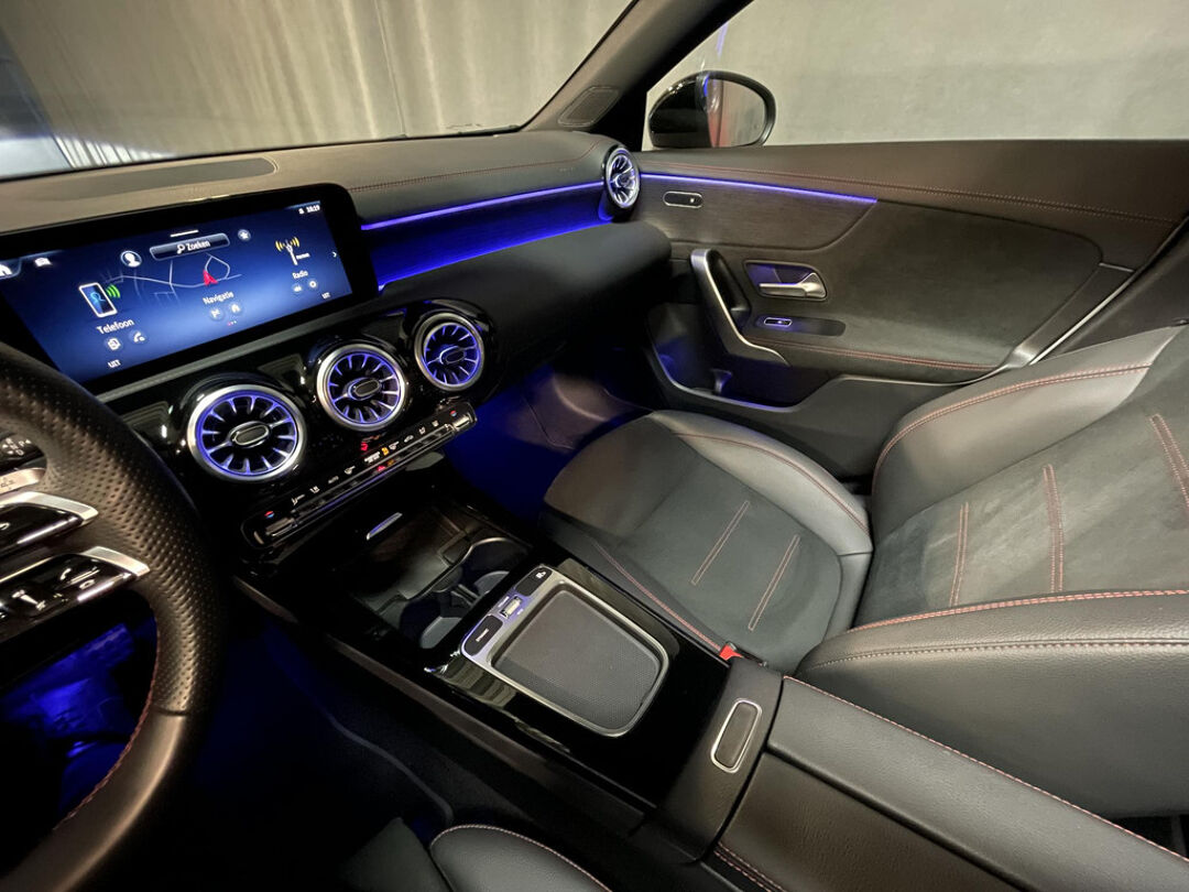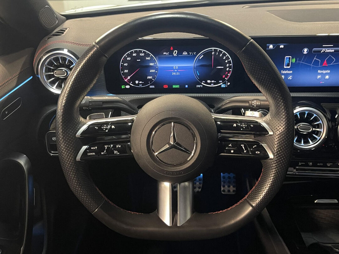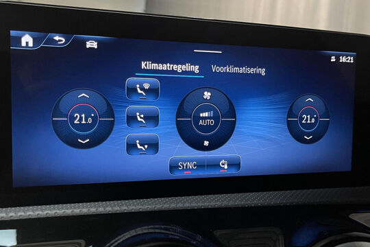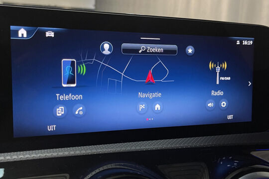 Snelheid, brandstofinfo, noem maar op. Het digitale dashboard houdt u permanent op de hoogte. Goed en overzichtelijk. Hoeveel ruimte heeft u nog bij het inparkeren? De achteruitrijcamera brengt helder in beeld wat zich achter de auto bevindt en geeft een geluidssignaal. Als u de adaptive cruise control inschakelt, regelt de auto zelf de snelheid en de afstand tot de auto voor u. Met uw smartphone maakt u overal contact met de auto. Remote services geven direct inzicht in uiteenlopende functies en zijn op afstand te activeren. Ook de akoestiek in de auto wordt optimaal benut door het high performance audiosysteem. Ook is de Mercedes-Benz uitgerust met: dashboard met spraakbediening, navigatiesysteem met harde schijf, electronic climate control, draadloos opladen, DAB ontvangst en regensensor.